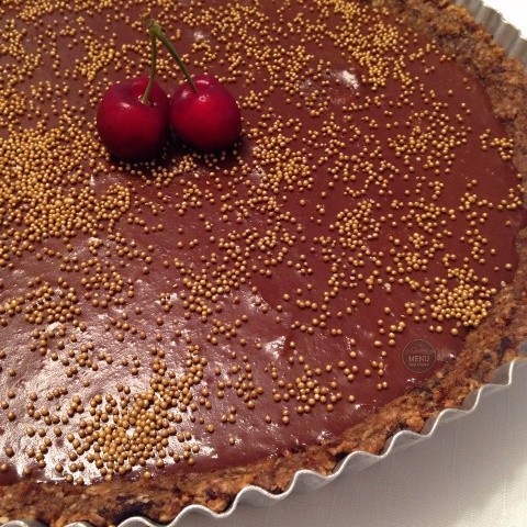 Receita de Torta raw com recheio de ganache e damasco sem glúten e sem lactose